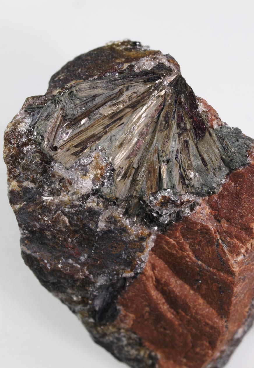 Ejemplar muy rico en arsenolamprita, un polimorfo del arsénico. Se presenta com una veta brillante, de color gris y lustre metálico, formada por cristales lamelares. Se rodea de arsénico de color gris muy oscuro. Una especie poco habitual.
