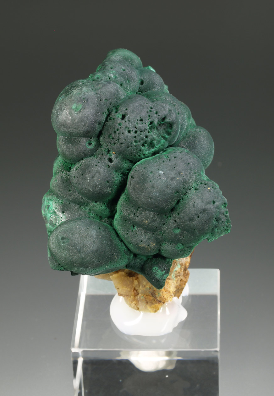 Muy estéticos agregados botroidales de malaquita totalmente recubiertos