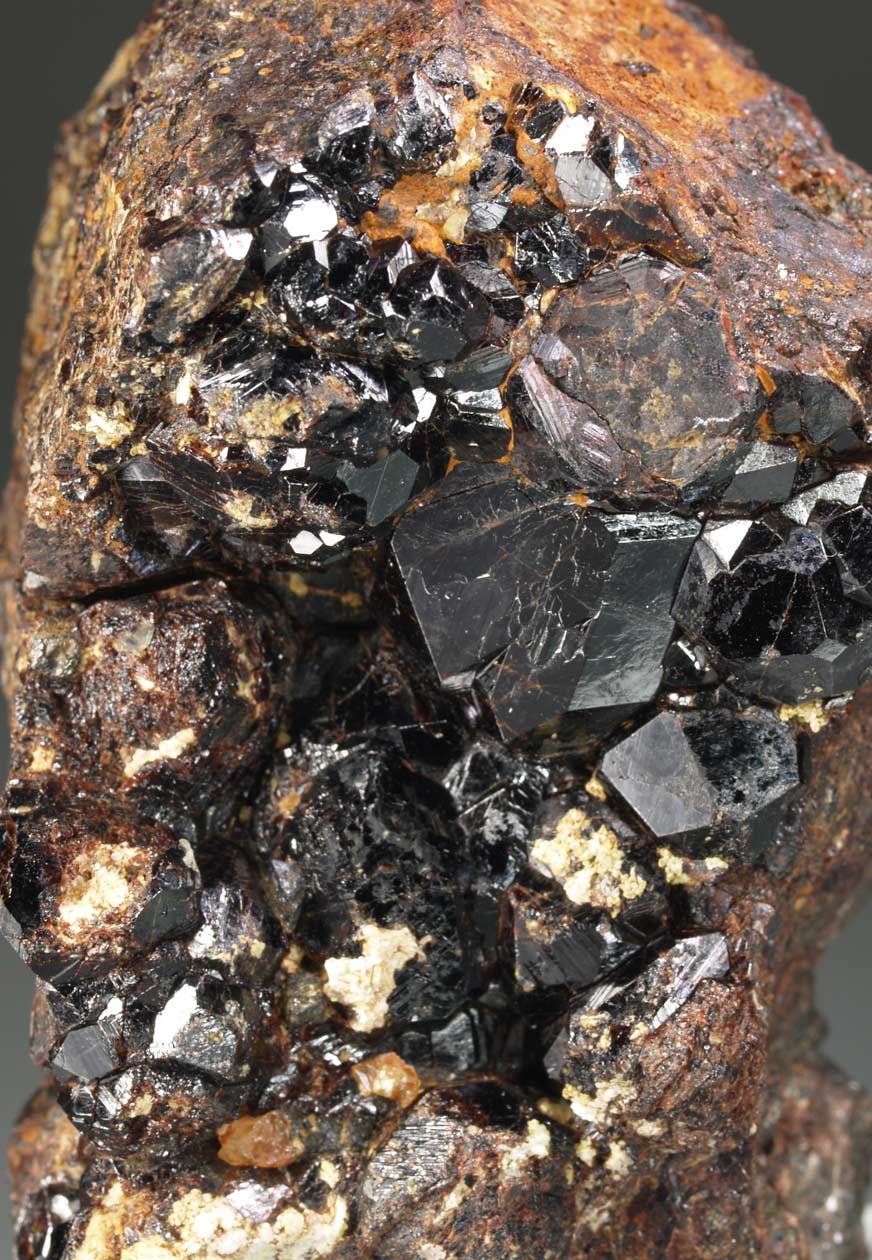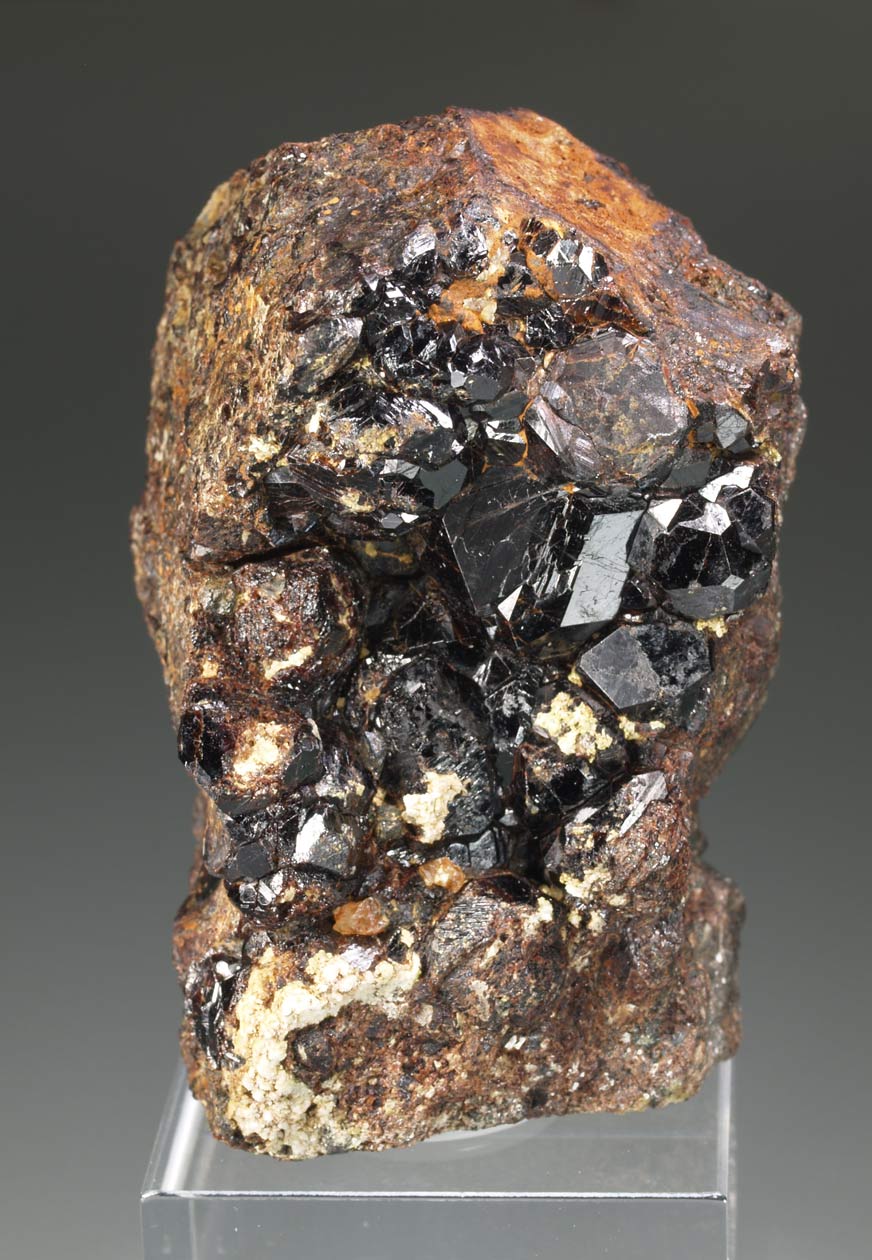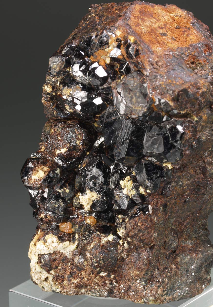 Los ejemplares de allanita-(Ce) de Trimouns son un clásico de la mineralogía francesa. Cabe decir que estso cristales si se analizan composicionalmente, se observa una zonación con la dissakisita-(Ce). Ambas especies pertenecen al grupo de la epidota y se diferencian composicionalmente por la presencia de Fe(II) (allanita) y Mg (la segunda). En este ejemplar podemos observar diversos cristales bien definidos de este mineral, uno de ellos de mayor tamaño, que contrastan con la matriz de dolomita.