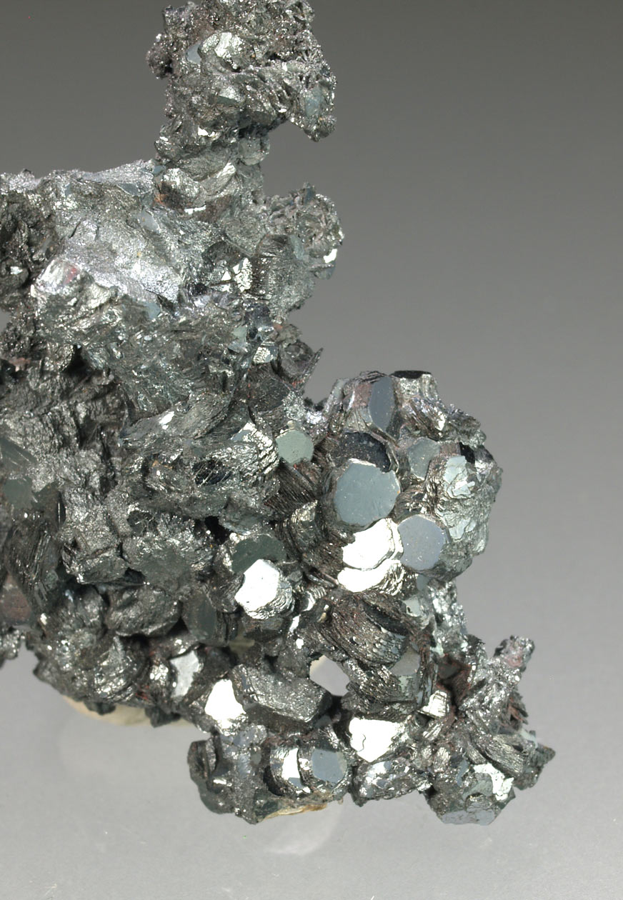 Se trata de un grupo de cristales tabulares gruesos de hematites interpenetrados. brillantes y facetados. Raro ejemplar de esta mina francesa poco conocida.
