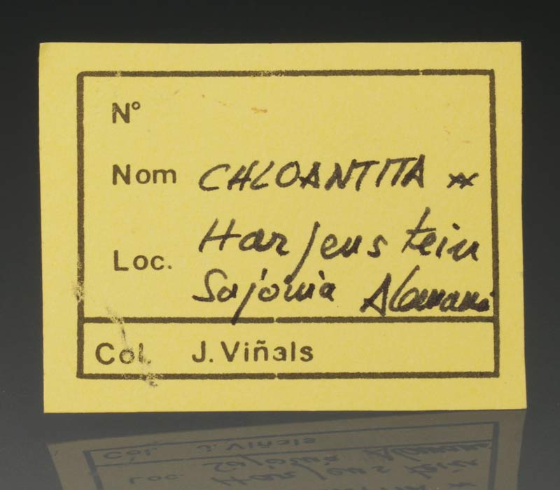 Muy pocos ejemplares de niquelskutterudita de este tamaño y de esta localidad histórica de Schlema-Hartenstein se ven hoy día. Este ejemplar nos muestra un rico grupo de cristales de este arseniuro de níquel (llamado antiguamente cloantita). Complejos cristales, brillantes, con caras... Una pieza muy valorada por los mineralogistas. De la localidad de tipo. Solo para "coleccionistas de profundidad". Procede de Joan Viñals y de la colección E. Nicolau (Barcelona).