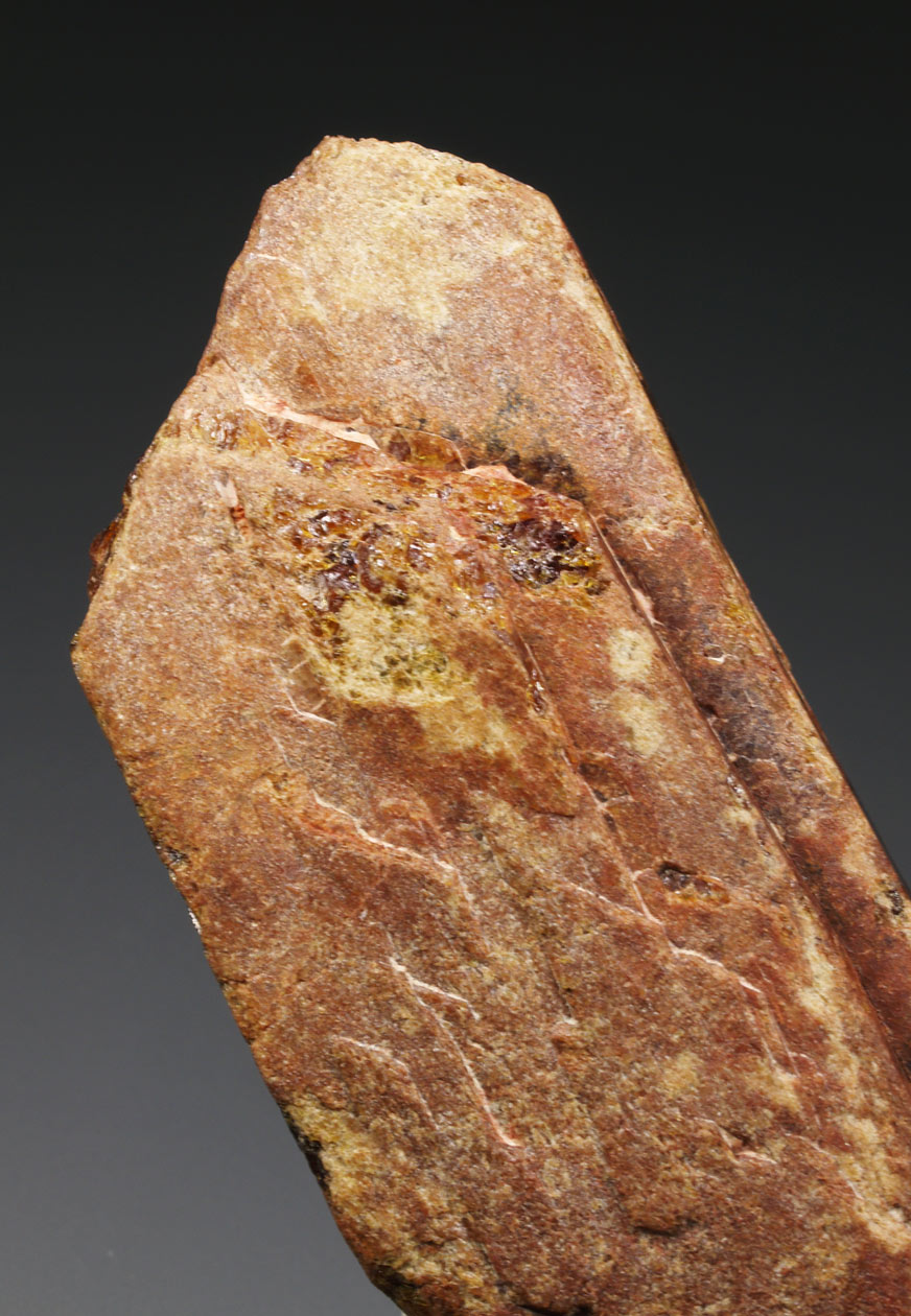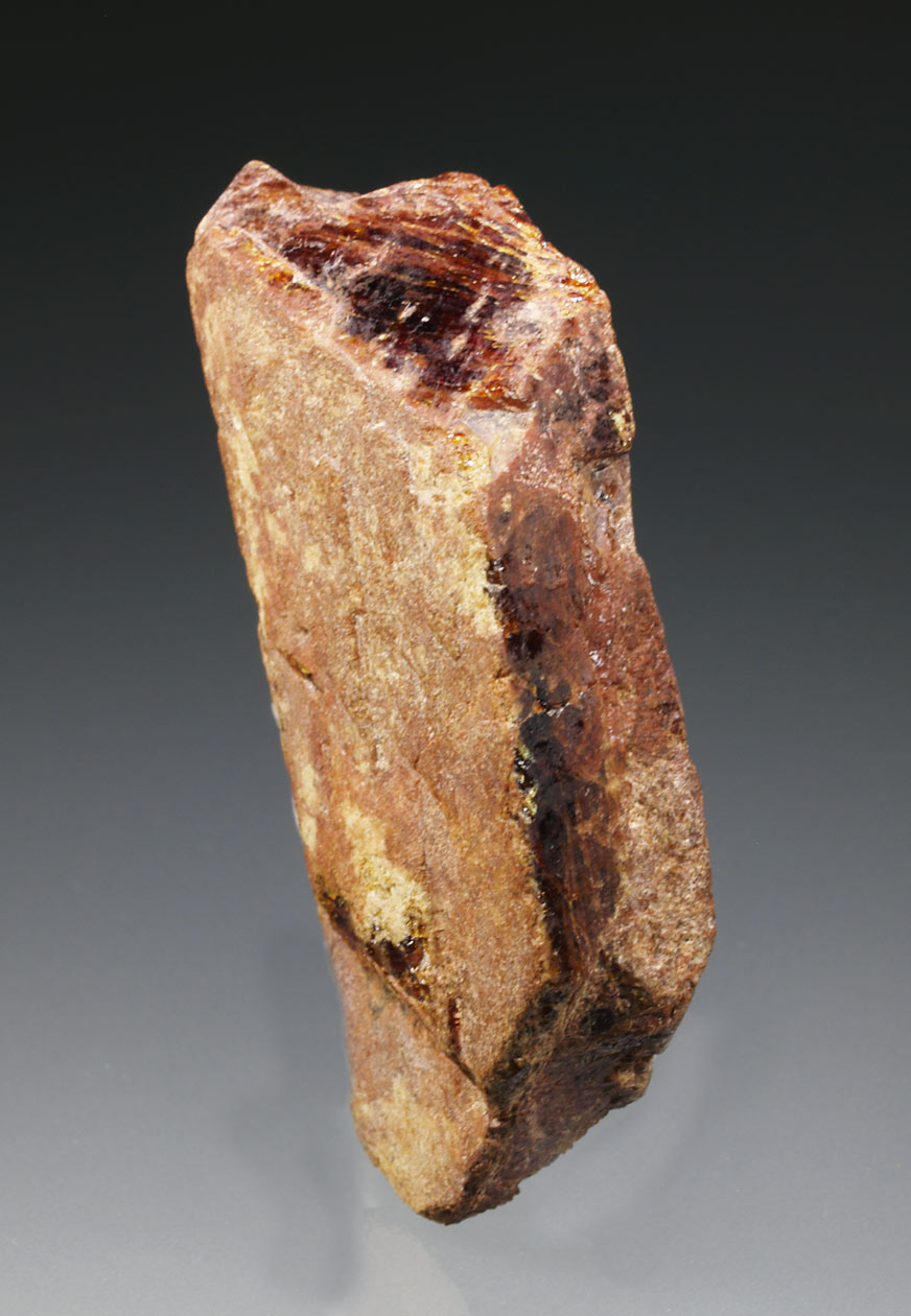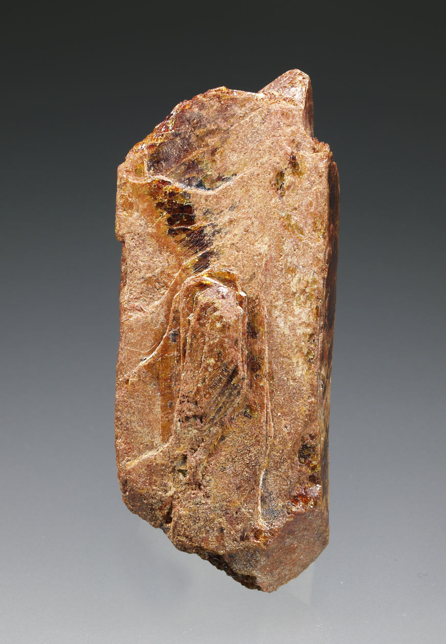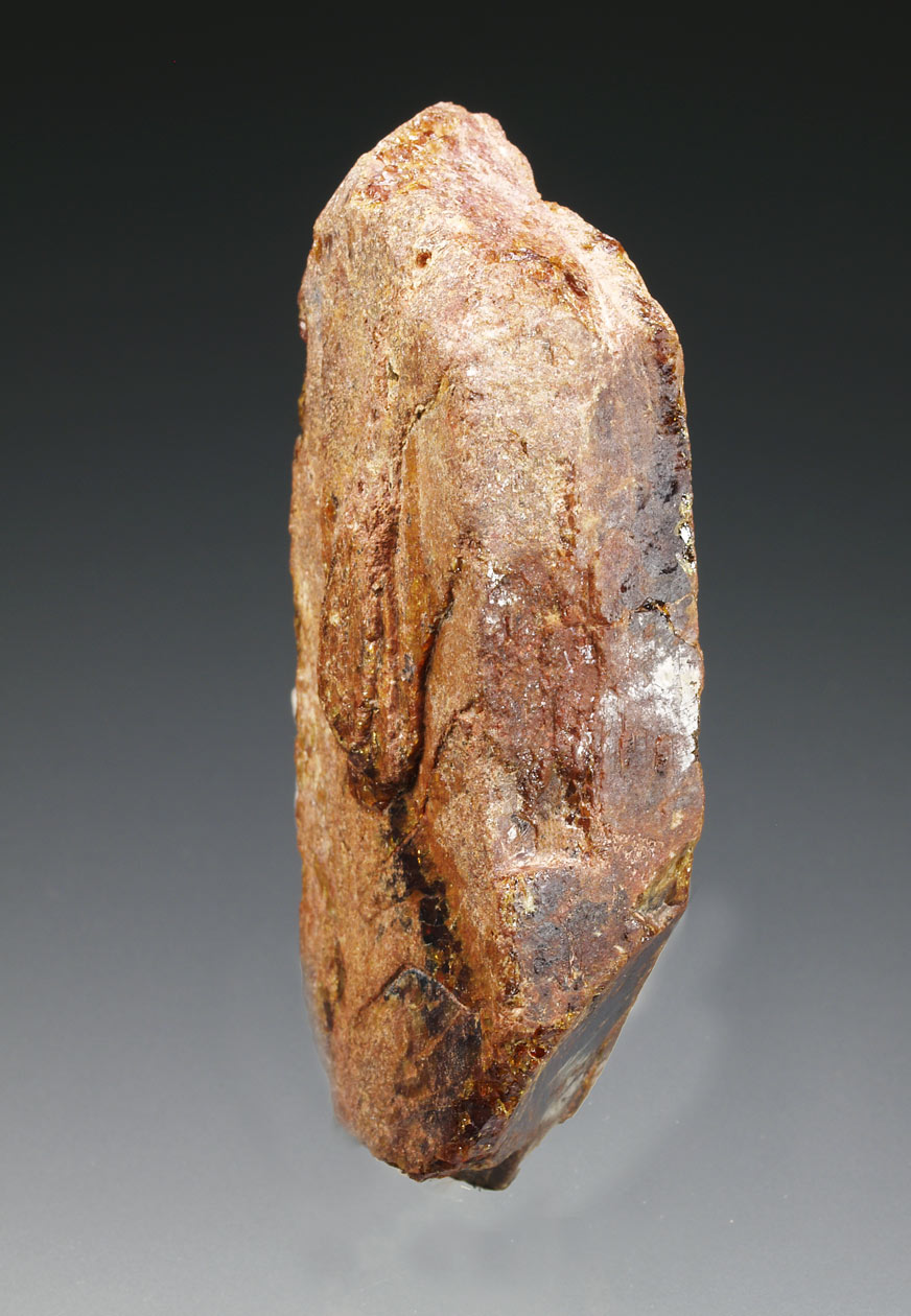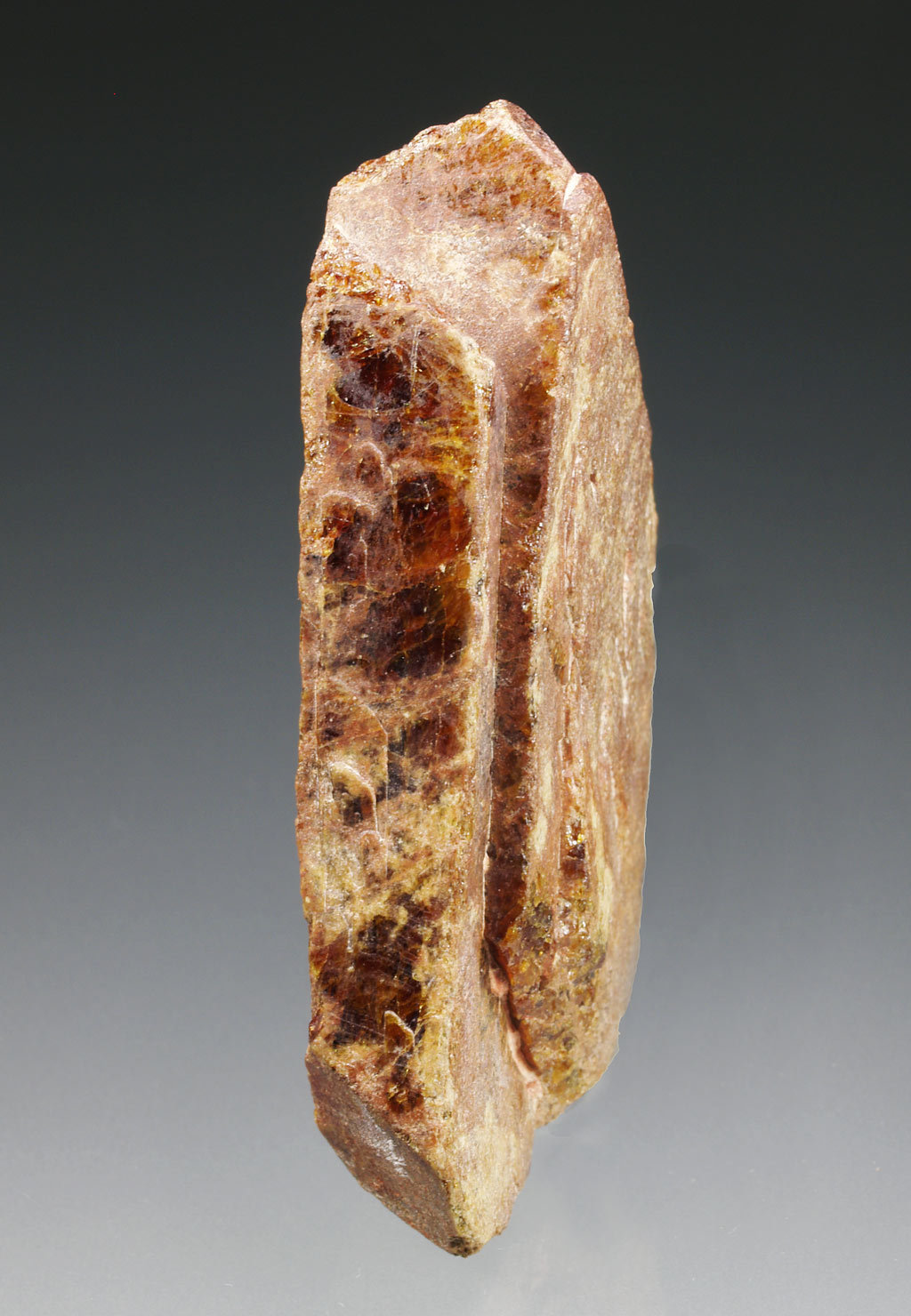 Cristal de granate de buen tamaño perteneciente a la serie almandino-spessartina, habitualmente con predominio del primero. Los análisis indican la presencia de Fe y Mn, con trazas de Mg. Estos ejemplares fueron identificados como piropos (aluminosilicato de magnesio), pero los resultados analíticos no lo indican.