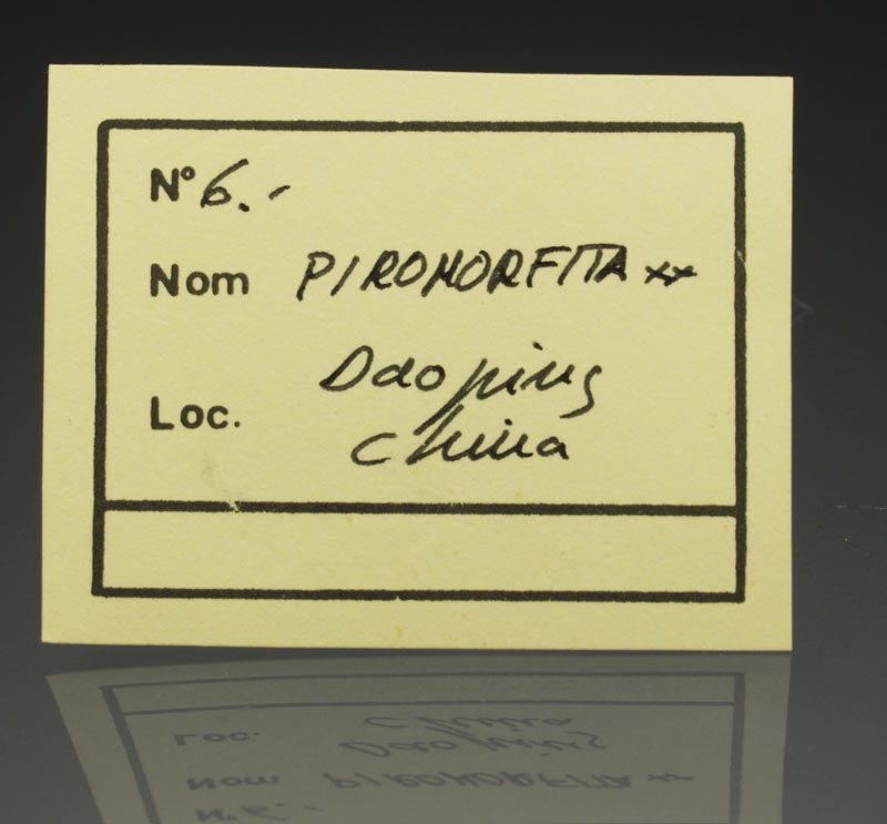 Vetas de color naranja de huanghoita-(Ce), de grano muy fino y asociadas a otros carbonatos de tierras raras como sinquisita-(Ce) y Röntgenita-(Ce), junto con aegirina de tonos verdosos. Una rareza difícil de encontrar. Bayan Obo es el depósito de tierras raras (REE) más grande del mundo. Curiosamente el contenido de fluorita de los menas también lo convierte en el depósito de fluorita más grande del mundo. Hay que pensar que el depósito de Bayan Obo tiene 18 km de largo y 3 km de ancho, cubriendo una superficie total de 48 km². El depósito se compone de tres yacimientos principales a cielo abierto.
