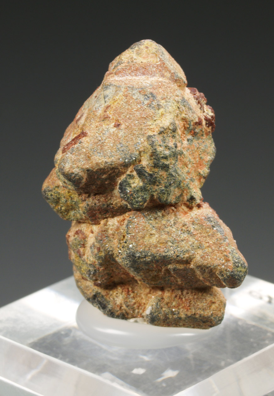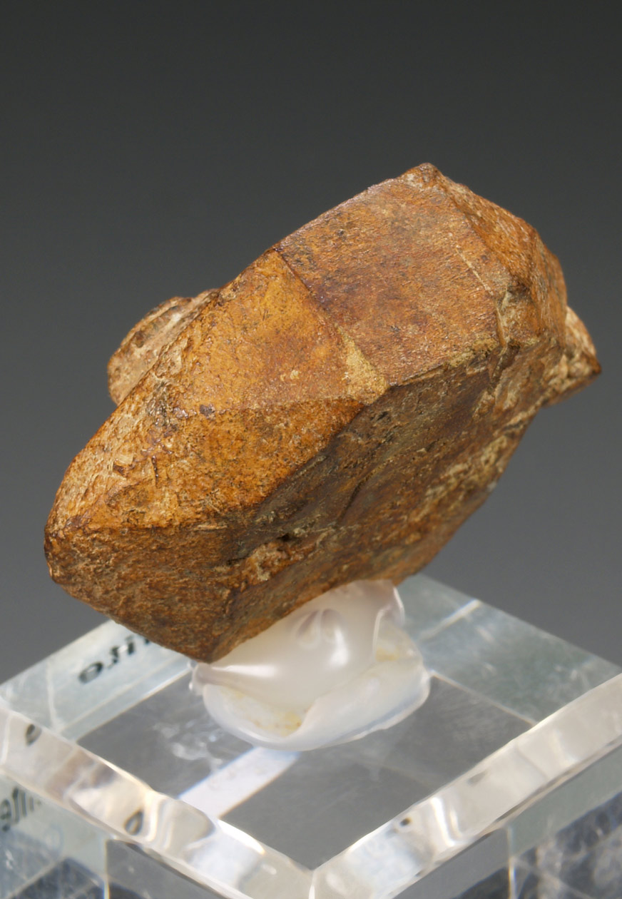 Una pieza antigua recogida en los años 50 por L. Gautron en unos diques de pegmatita que se encuentran a unos 20 km SO de la ciudad Antsirabé en el altiplano de Madagascar. Se trata de un cristal que muestra caras y aristas redondeadas, con buen tamaño. Un especimen histórico.