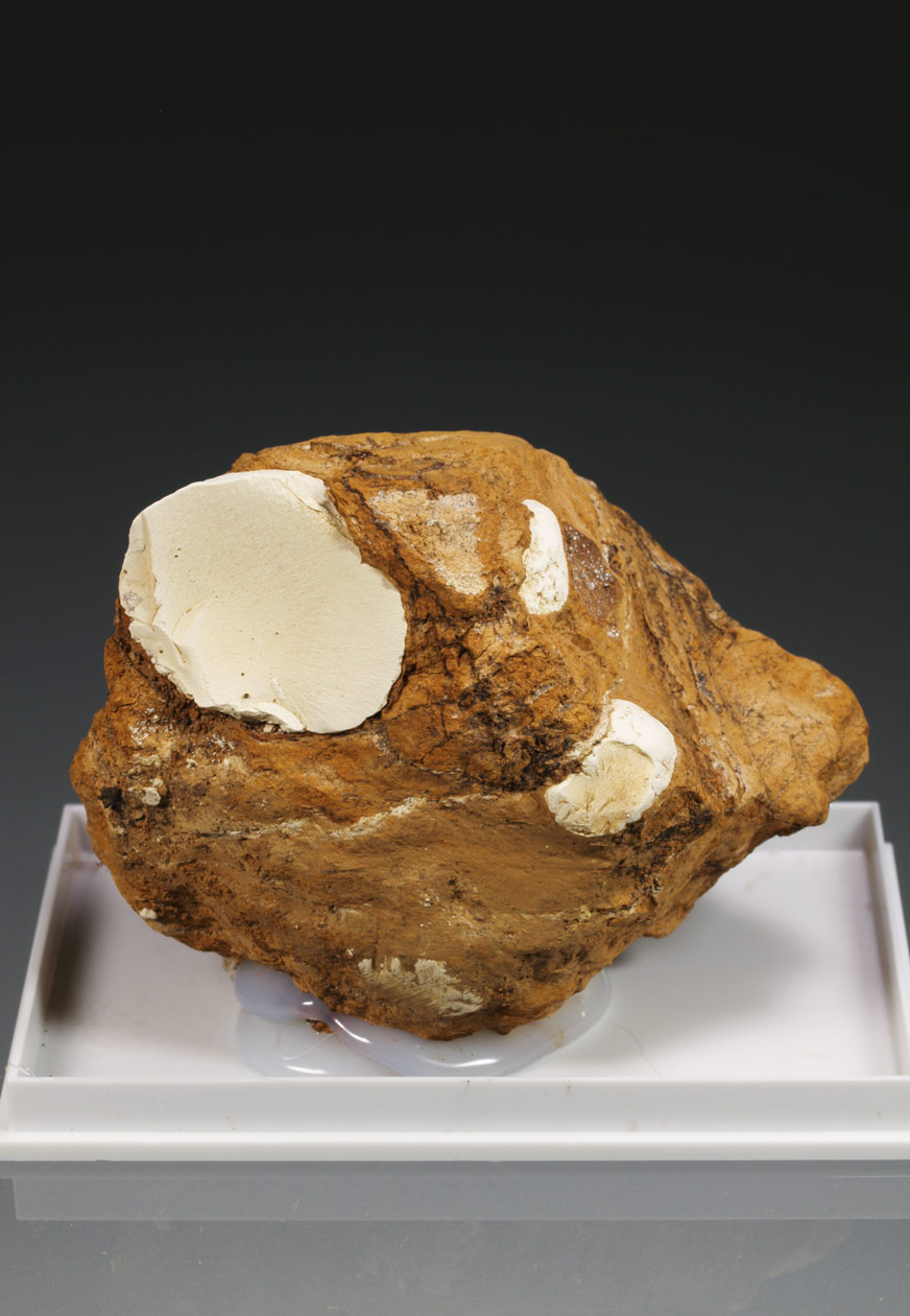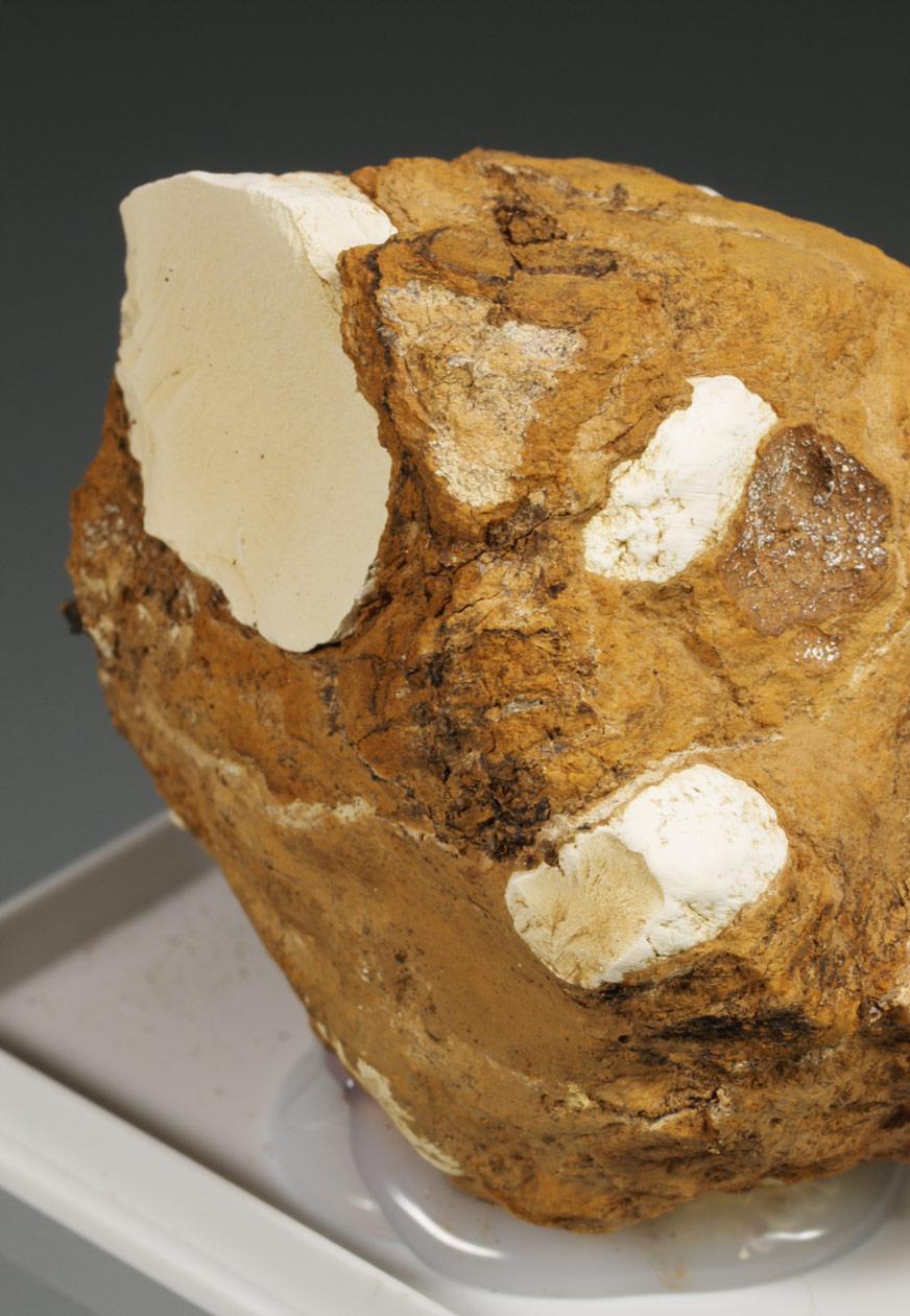 Muy interesante combinación formada por un nódulo de tinticita con algún pequeño agregado de calcioferrita. La calcioferrita muestra agregados globulares de color verde oliva, con cristales radiados, incluidos en matriz de tinticita. Estos especímenes han sido analizados por SEM-EDS y XRD y enviaremos todos los detalles al comprador. De esta clásica mina catalana.